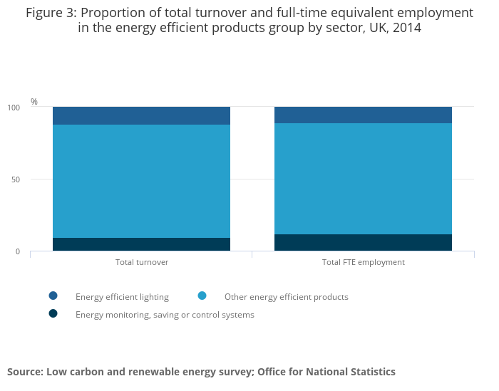 Energy efficient products generated £38.7 billion of turnover in 2014, of which 42.2% was from indirect activity, making this group the largest in terms of turnover.