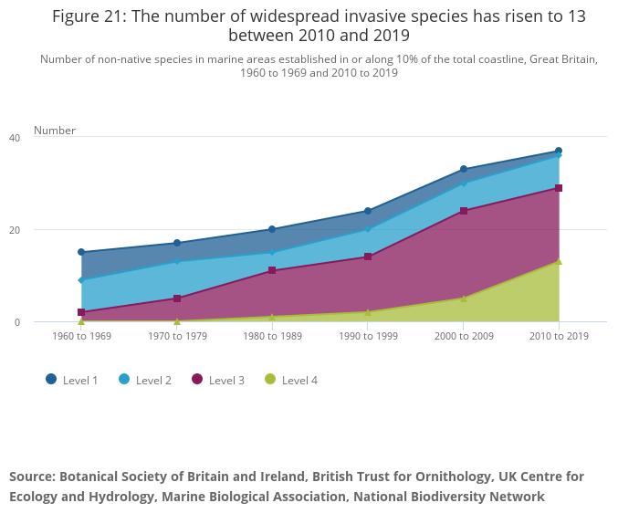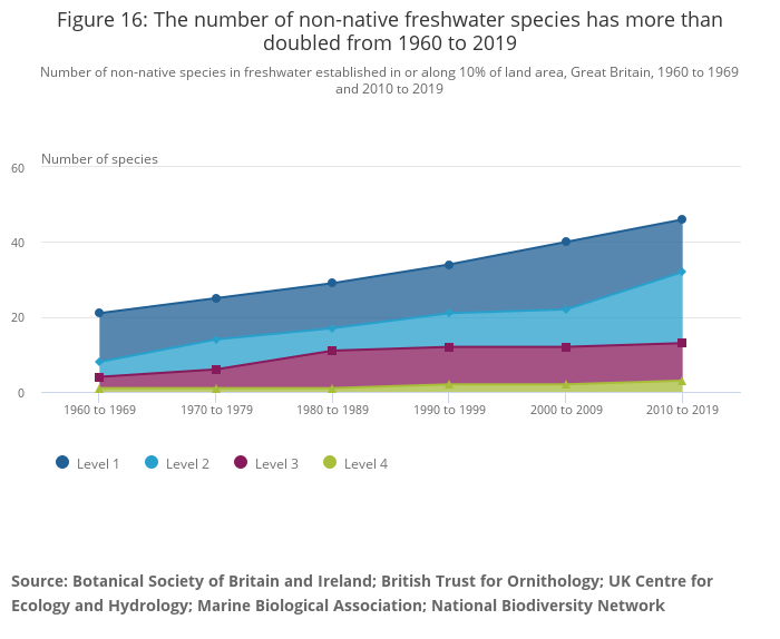 Non-native freshwater species more than doubled from 21 in the 1960s to 46 in the 2010s.