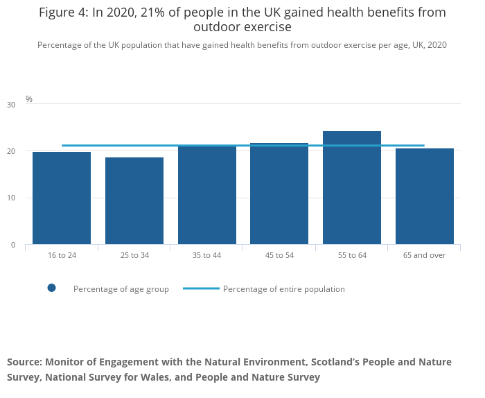 Figure 4: In 2020, 21% of people in the UK gained health benefits from outdoor exercise