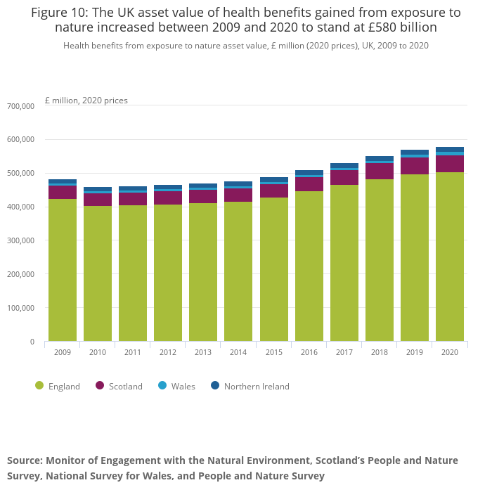 Download this chart Figure 10: The UK asset value of health benefits gained from exposure to nature increased between 2009 and 2020 to stand at £580 billion