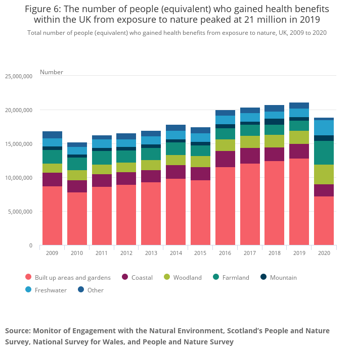 Total number of people (equivalent) who gained health benefits from exposure to nature, UK, 2009 to 2020