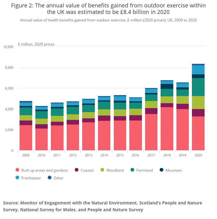 Figure 2: The annual value of benefits gained from outdoor exercise within the UK was estimated to be £8.4 billion in 2020