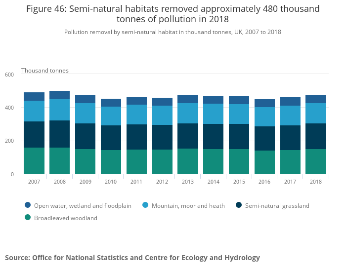 Figure 46: Semi-natural habitats removed approximately 480 thousand tonnes of pollution in 2018