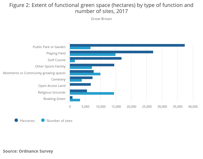There are over 62,000 urban green space sites in Great Britain adapted for a specific function e.g. public gardens and parks.