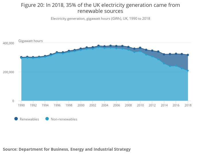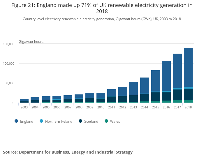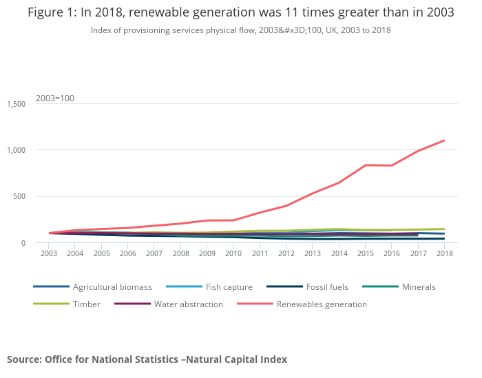 Figure 1: In 2018, renewable generation was 11 times greater than in 2003