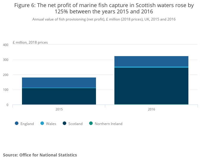 We have been working to improve our fisheries statistics and more work is needed. We rely on a range of external sources which all involve known uncertainties. For instance, Norway and Faroese landings are excluded from this analysis. The economic data are based on UK fleet data which we also apply to foreign vessels that may face different costs and prices. In addition, UK boundaries do not perfectly align with the geographical areas of fish capture statistics. For more detail on how fish capture in UK waters is estimated, see the Marine Management Organisation Exclusive Economic Zone Analysis and associated publications.