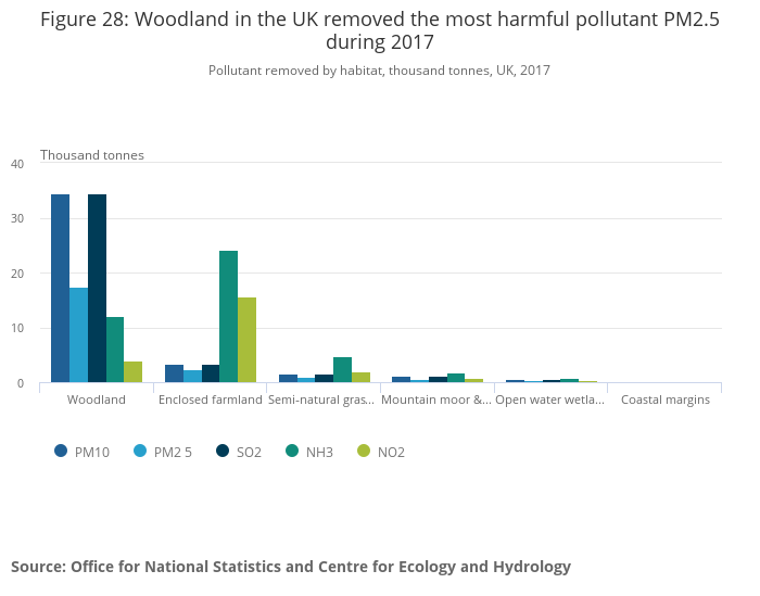 The Office for National Statistics (ONS) natural capital accounts are produced in partnership with the Department for Environment, Food and Rural Affairs (Defra). Further details about the natural capital accounting project are also available.