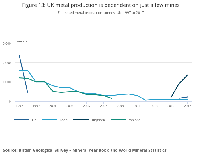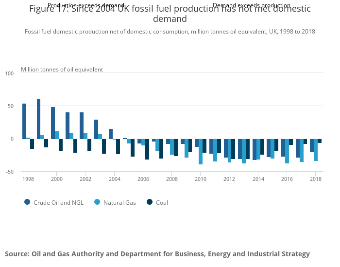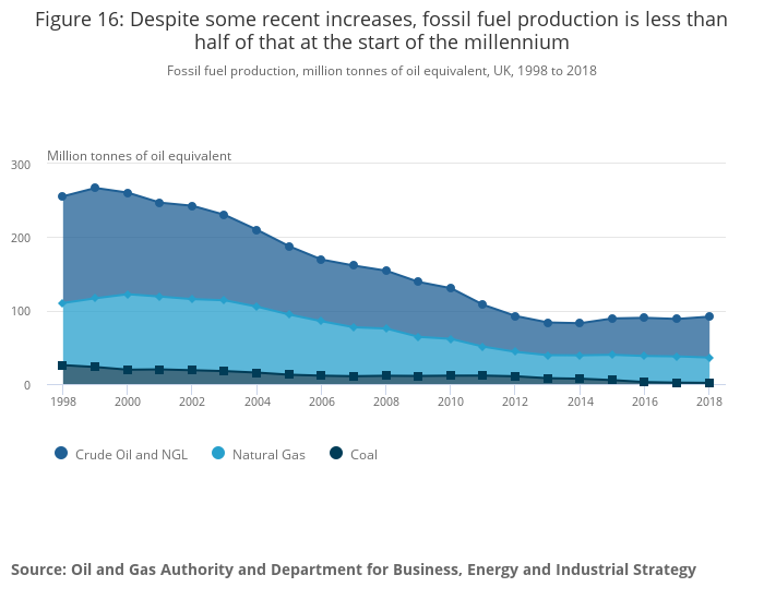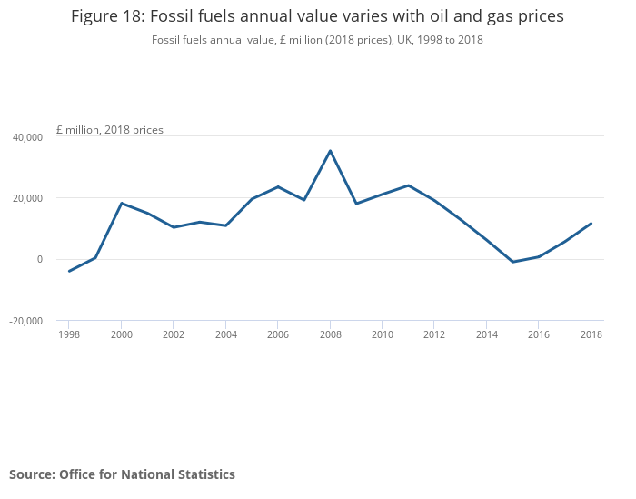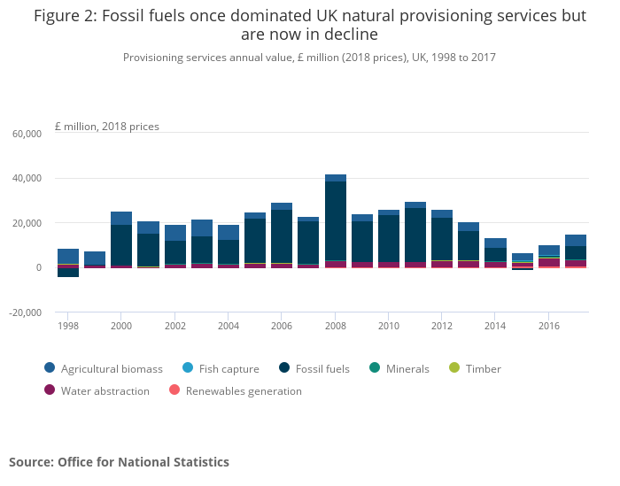 Figure 2: Fossil fuels once dominated UK natural provisioning services but are now in decline