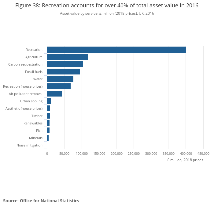 - In 2016, with the addition of new services, the partial asset value of UK natural capital was estimated to be nearing £1 trillion (£958 billion).