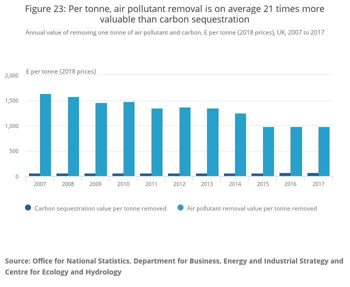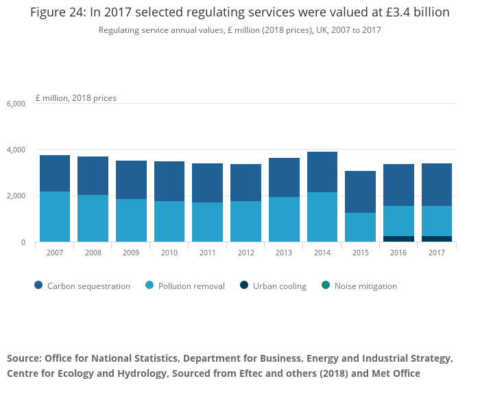 Several ecosystem services are not being measured in this article, so the monetary accounts should be interpreted as a partial or minimum value of UK natural capital.