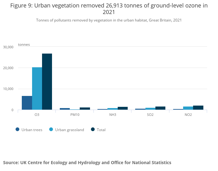 UK Centre of Ecology and Hydrology modelling includes the air pollution removal of urban trees and urban grassland.