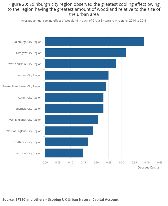 Urban woodlands cooled 11 city regions sufficiently on hot days to save £229.2 million in labour productivity and avoided air conditioning costs during 2018.