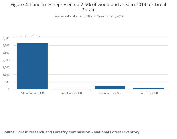 Figure 4: Lone trees represented 2.6% of woodland area in 2019 for Great Britain