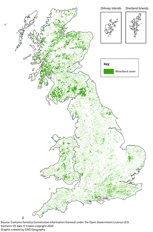 Download this image Figure 1: Extent of Great Britain woodland, 2018