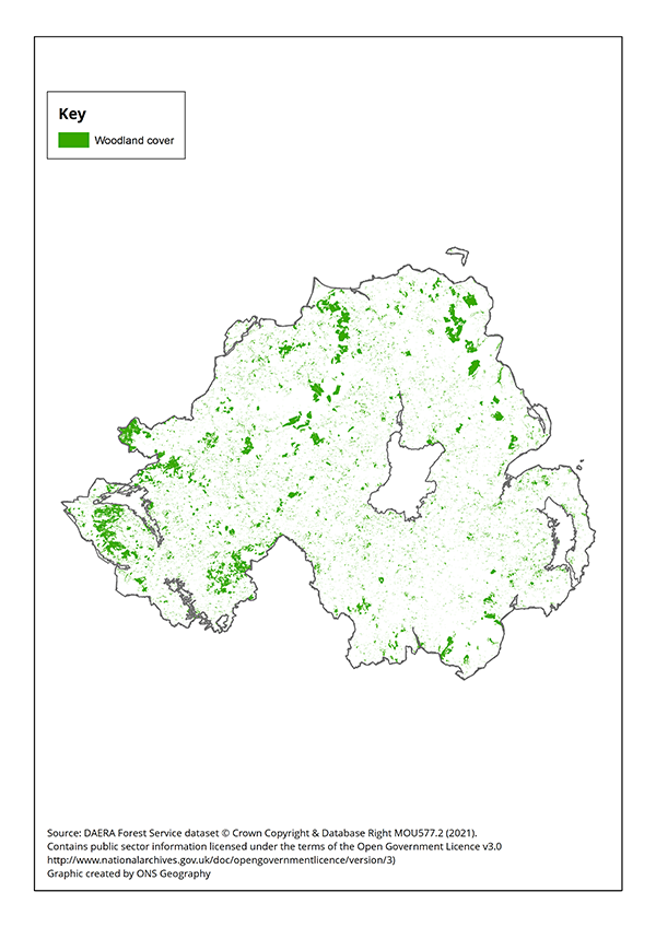 Download this image Figure 2. Extent of woodland in Northern Ireland Woodland, 2019