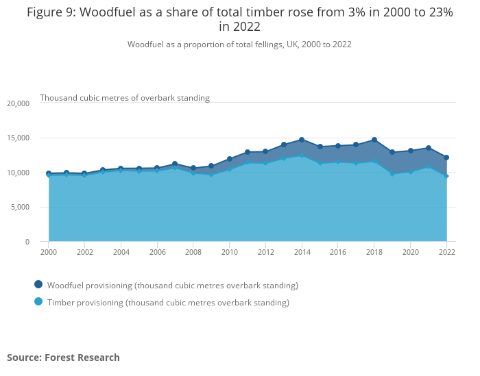 - The asset value of UK woodlands was an estimated £382 billion in 2021; while timber and woodfuel is often seen as the main woodland asset, it accounted for 3.9% or £14.8 billion.