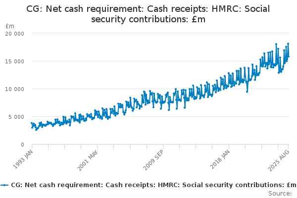 Download this time seriesCG: Net cash requirement: Cash receipts: HMRC: Social security contributions: £m