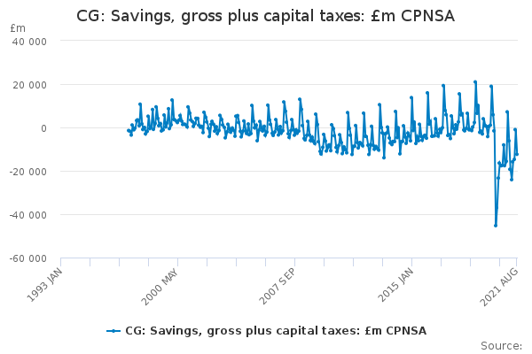 Download this time seriesCG: Savings, gross plus capital taxes: £m CPNSA