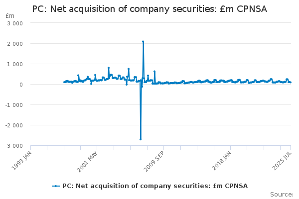 Download this time seriesPC: Net acquisition of company securities: £m CPNSA