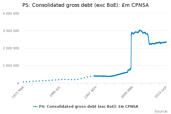 Download this time seriesPS: Consolidated gross debt (exc BoE): £m CPNSA