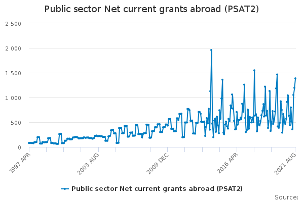 Download this time seriesPublic sector Net current grants abroad (PSAT2)
