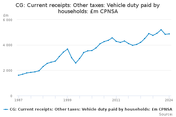 Download this time seriesCG: Current receipts: Other taxes: Vehicle duty paid by households: £m CPNSA