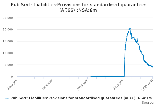 Download this time seriesPub Sect: Liabilities:Provisions for standardised guarantees (AF.66) :NSA:£m