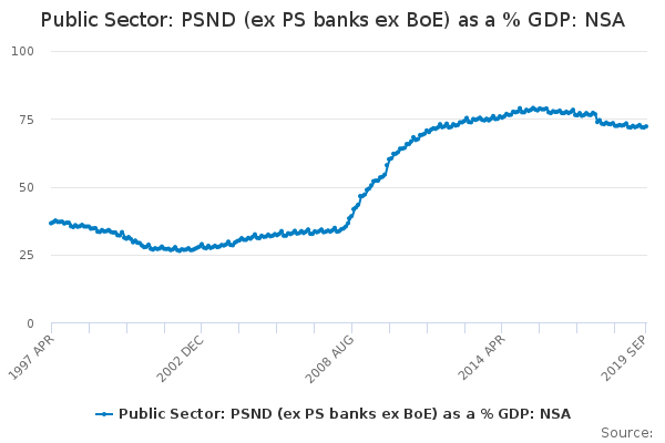 Download this time seriesPublic Sector: PSND (ex PS banks ex BoE) as a % GDP: NSA