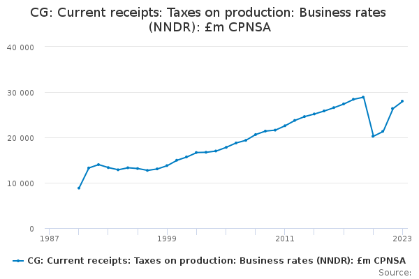Download this time seriesCG: Current receipts: Taxes on production: Business rates (NNDR): £m CPNSA