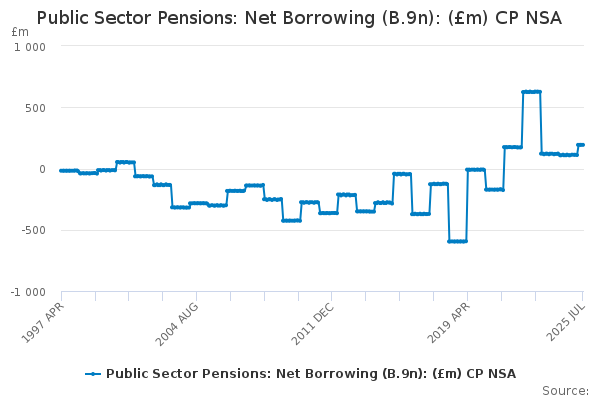 Download this time seriesPublic Sector Pensions: Net Borrowing (B.9n): (£m) CP NSA