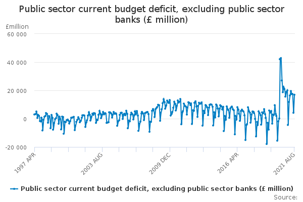 Download this time seriesPublic sector current budget deficit, excluding public sector banks (£ million)