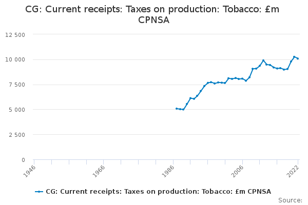 Download this time seriesCG: Current receipts: Taxes on production: Tobacco: £m CPNSA