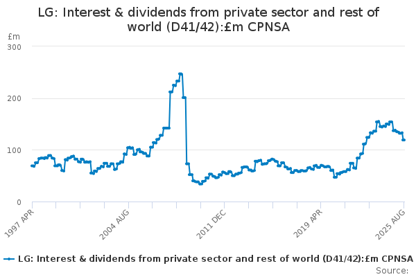 Download this time seriesLG: Interest & dividends from private sector and rest of world (D41/42):£m CPNSA