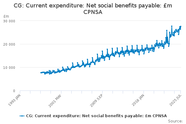 Download this time seriesCG: Current expenditure: Net social benefits payable: £m CPNSA