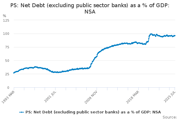 Download this time seriesPS: Net Debt (excluding public sector banks) as a % of GDP: NSA
