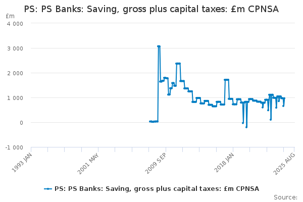 Download this time seriesPS: PS Banks: Saving, gross plus capital taxes: £m CPNSA