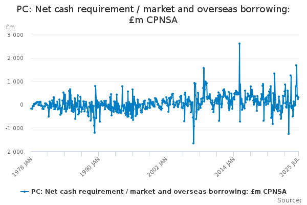 Download this time seriesPC: Net cash requirement / market and overseas borrowing: £m CPNSA
