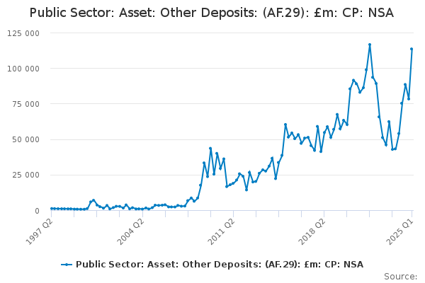 Download this time seriesPublic Sector: Asset: Other Deposits: (AF.29): £m: CP: NSA