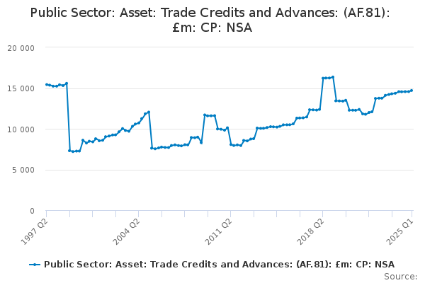 Download this time seriesPublic Sector: Asset: Trade Credits and Advances: (AF.81): £m: CP: NSA