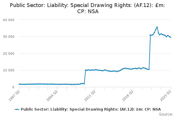 Download this time seriesPublic Sector: Liability: Special Drawing Rights: (AF.12): £m: CP: NSA