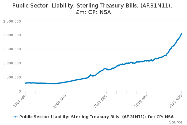 Download this time seriesPublic Sector: Liability: Sterling Treasury Bills: (AF.31N11): £m: CP: NSA