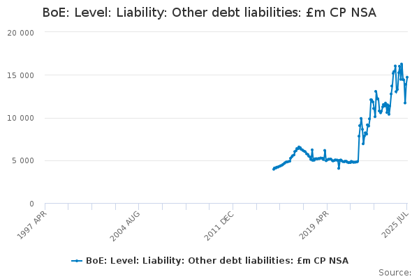 Download this time seriesBoE: Level: Liability: Other debt liabilities: £m CP NSA