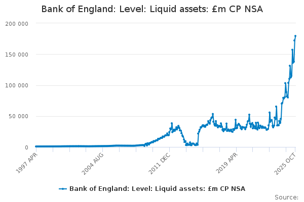 Download this time seriesBank of England: Level: Liquid assets: £m CP NSA