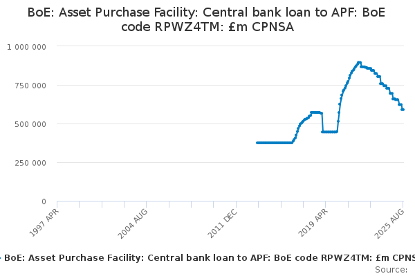Download this time seriesBoE: Asset Purchase Facility: Central bank loan to APF: BoE code RPWZ4TM: £m CPNSA