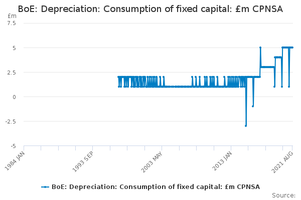 Download this time seriesBoE: Depreciation: Consumption of fixed capital: £m CPNSA