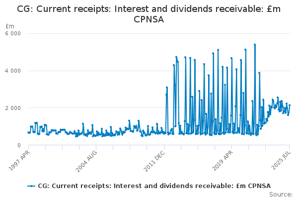 Download this time seriesCG: Current receipts: Interest and dividends receivable: £m CPNSA