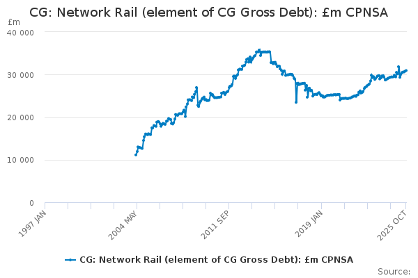 Download this time seriesCG: Network Rail (element of CG Gross Debt): £m CPNSA