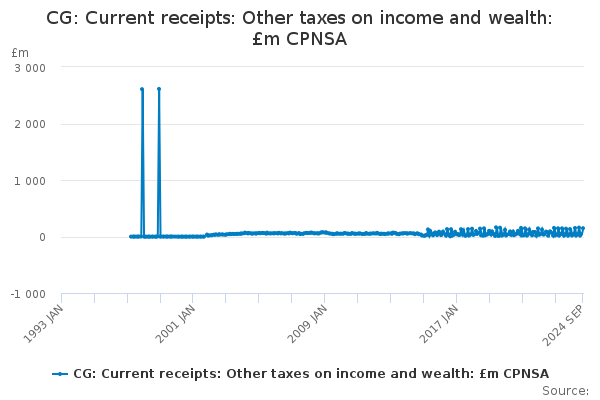Download this time seriesCG: Current receipts: Other taxes on income and wealth: £m CPNSA