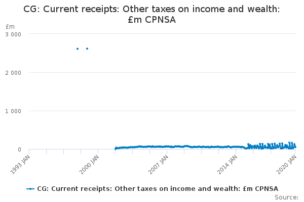 Download this time seriesCG: Current receipts: Other taxes on income and wealth: £m CPNSA