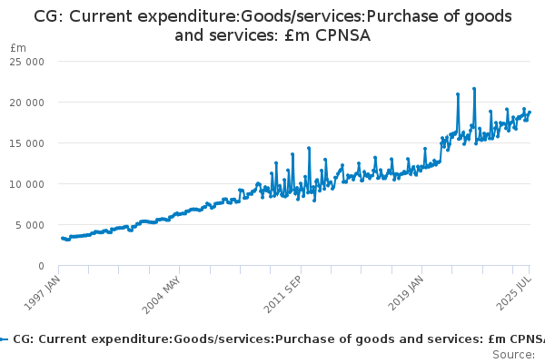 Download this time seriesCG: Current expenditure:Goods/services:Purchase of goods and services: £m CPNSA